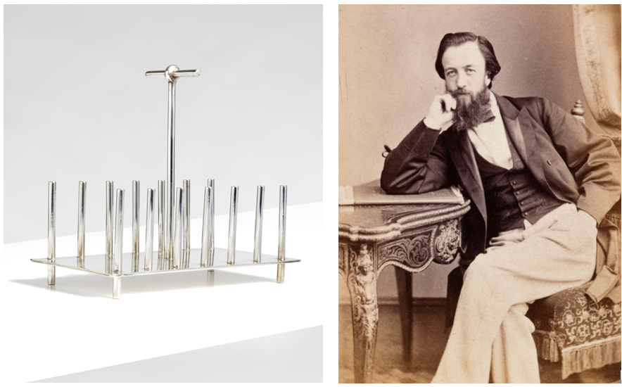 Left: Christopher Dresser for Hukin & Heath, Toast Rack, ‘Model 1987’, 1878. 14cm high, 15cm deep. Estimate: £10,000-15,000. Right: Christopher Dresser. Photography courtesy of the Linnean Society of London.