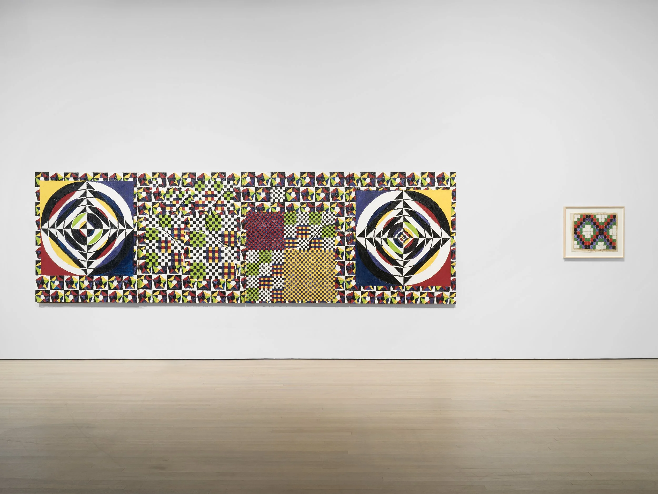 Alfred Jensen Physical Optics, 1975 PAINTING oil on canvas 7' 2" x 12' 9" (218.4 cm x 388.6cm), overall installed 7' 2" x 4'3" (218.4 cm x 129.5 cm), 3 panels, each © Estate of AlfredJensen/ArtistsRightsSociety (ARS), NewYork