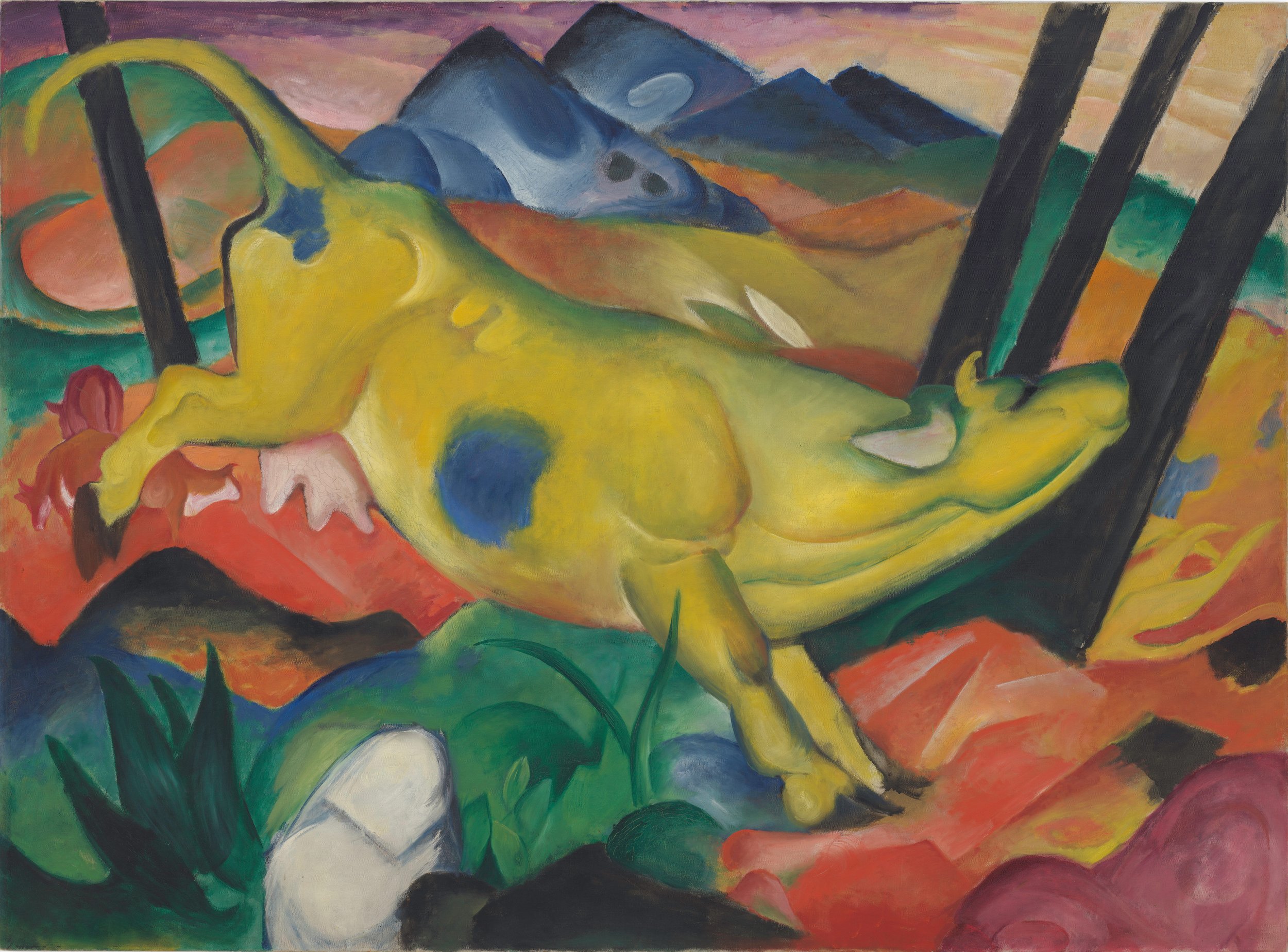 Franz Marc, Yellow Cow (Gelbe Kuh), 1911. Oil on canvas, 55 3/8 ×74 1/2 in.(140.7 ×189.2 cm). Solomon R. Guggenheim Museum, New York, Solomon R. Guggenheim Founding: Collection 49.1210. Photo: Ariel Ione Williams, Solomon R. Guggenheim Museum, New York