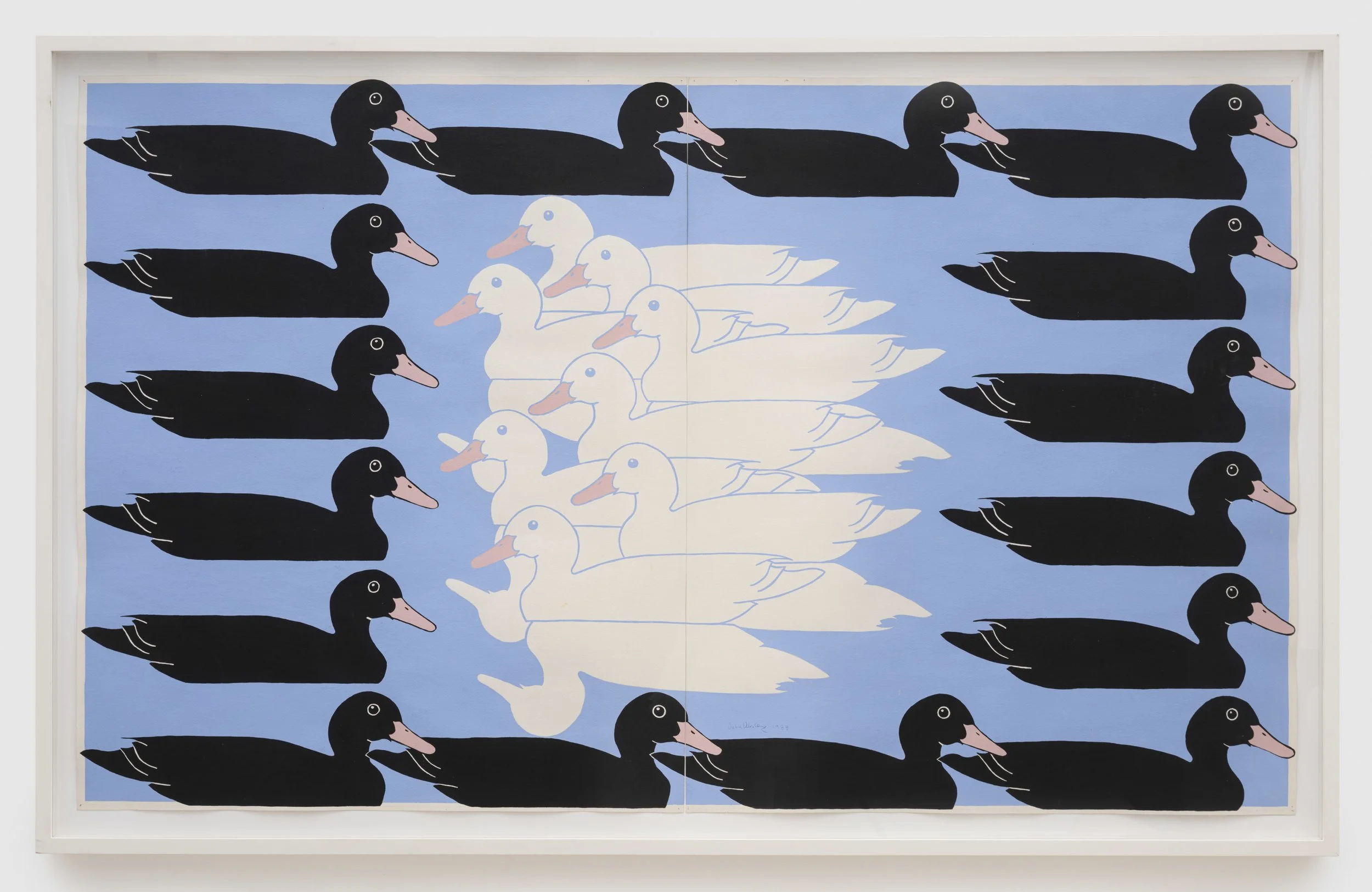 Untitled (Ducks), 1983 WORK ON PAPER acrylic on paper 39-1/2" × 62-1/2" × 1-1/2" (100.3 cm × 158.8 cm × 3.8 cm), framed No. 86524 © John Wesley, courtesy of The John Wesley Foundation and Pace Gallery