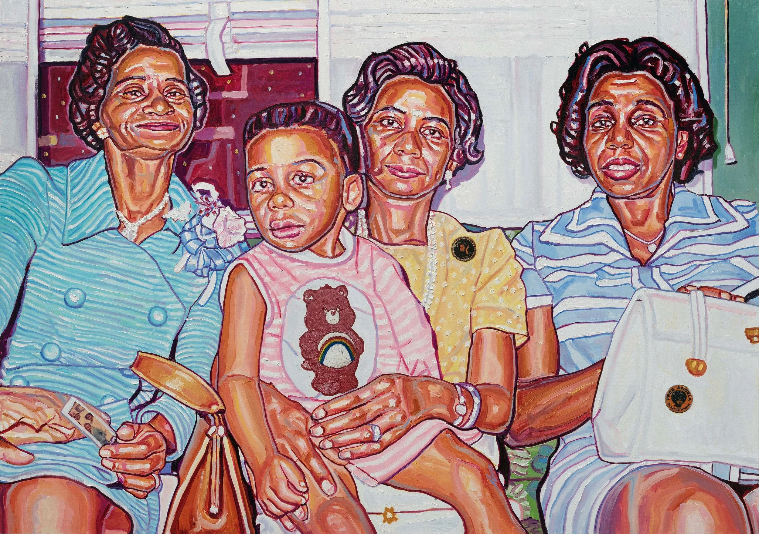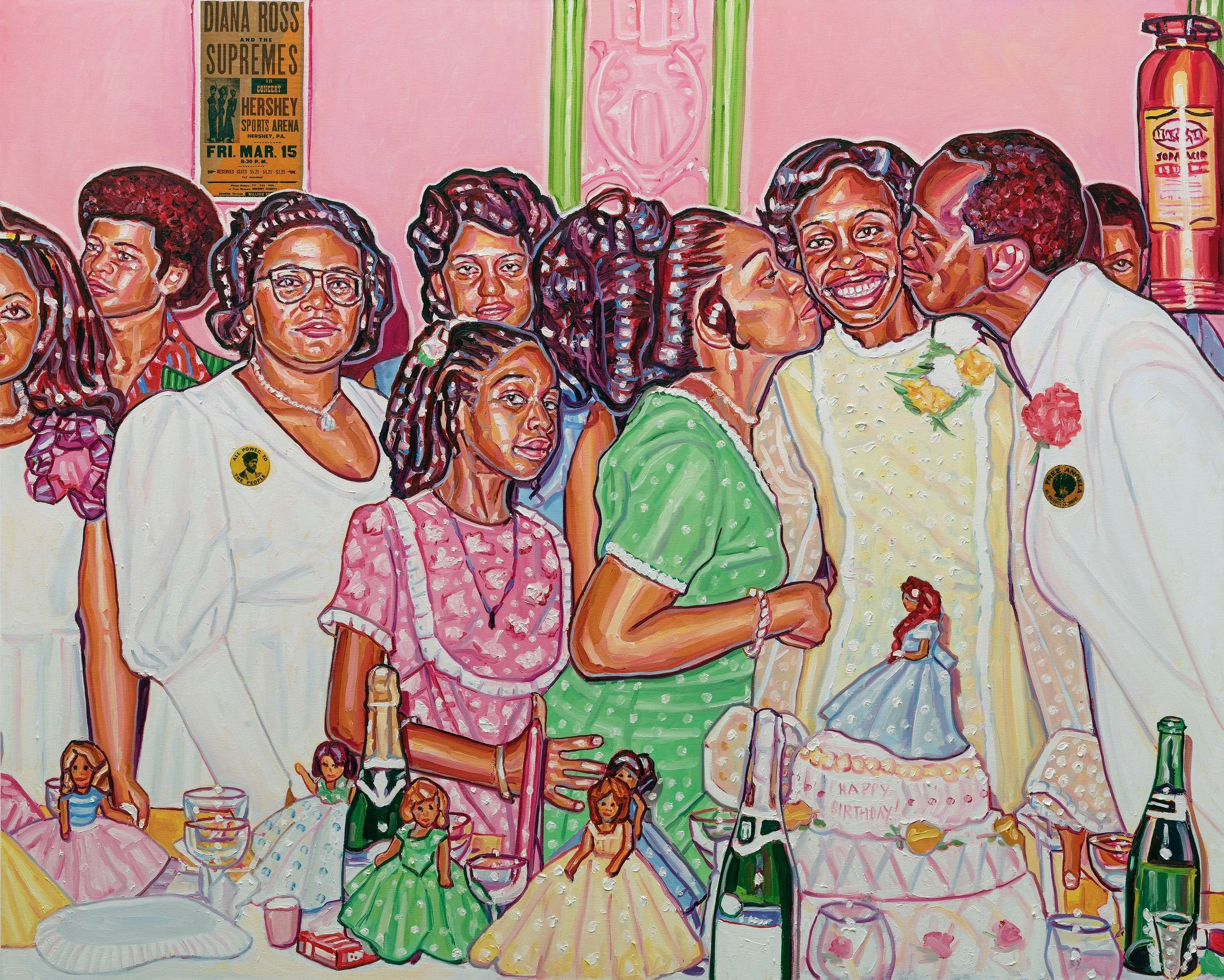 documented. My works are full of depictions of ordinary moments, they champion and chronicle Black experience by exploring untold, often forgotten and even neglected narratives of people of the African diaspora. As a painter I am tickled by the distinctive colour scheme of these old photos, saturated and faded at the same time. The fascination with the colours is painfully ironic, considering the racial bias inherent in the technology of colour photography film and other colour film technologies which struggled to accurately reproduce darker skin tones, often resulting in a loss of detail and a washed-out appearance. Mostly because the cooler film emulsions at the time were primarily designed for