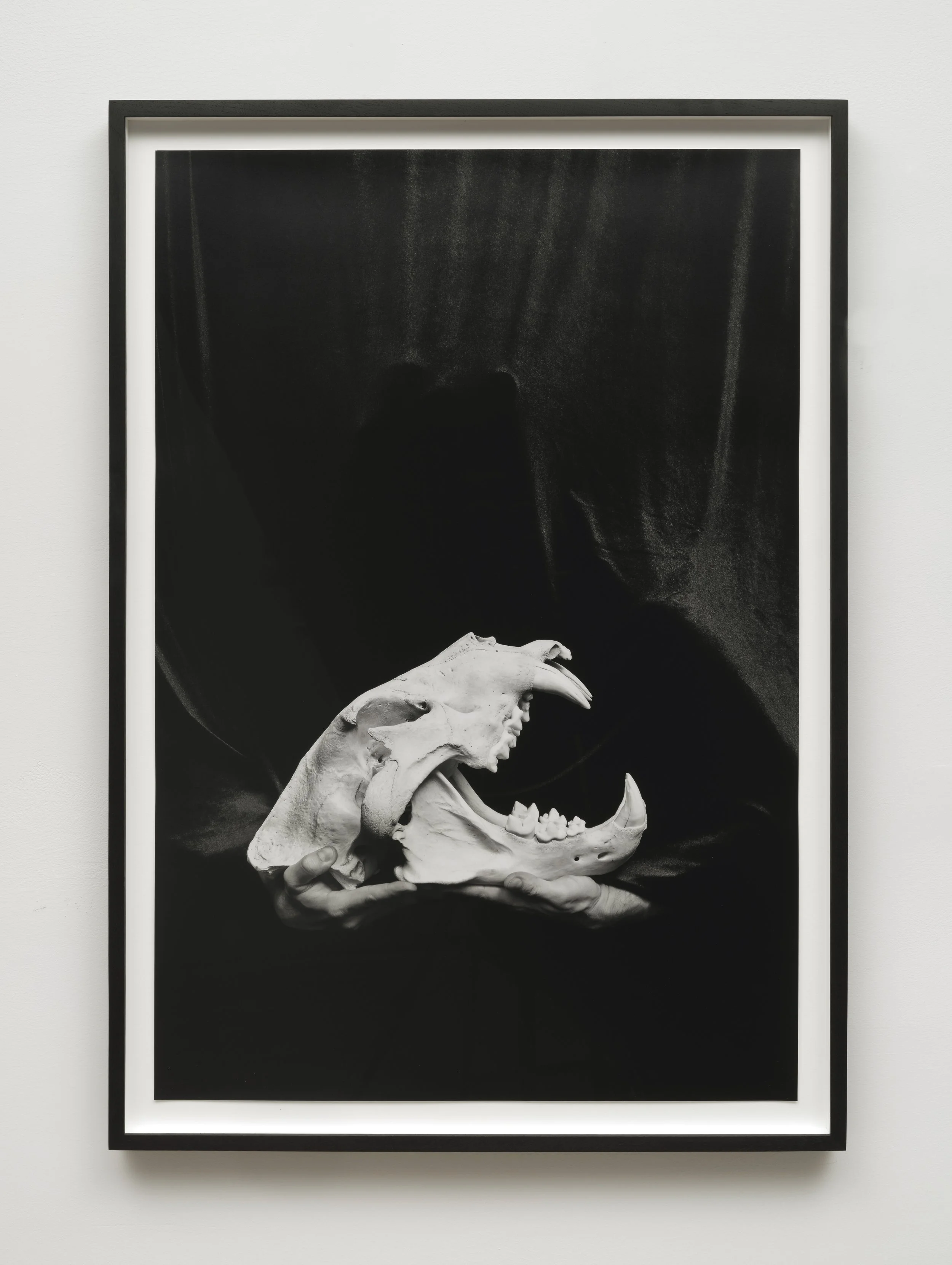 R: In the haunting self-portrait where you cradle a Siberian tiger’s skull while cloaked in velvet, you complicate the relationship between subject and object. Can you talk about how you navigate self-representation in this work, especially within the framework of authority, visibility, and power?
