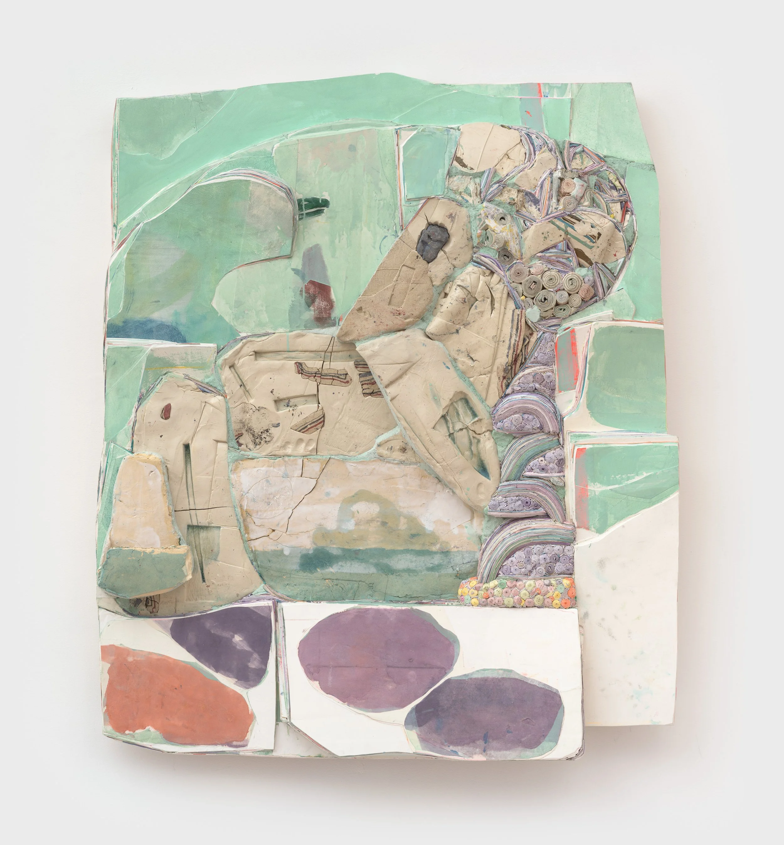 Hilary Harnischfeger Palo Duro, 2025 paper, ink, dye, mica, hydrostone, ceramic, wood 27 x 23 x 9 in (68.6 x 58.4 x 22.9 cm)