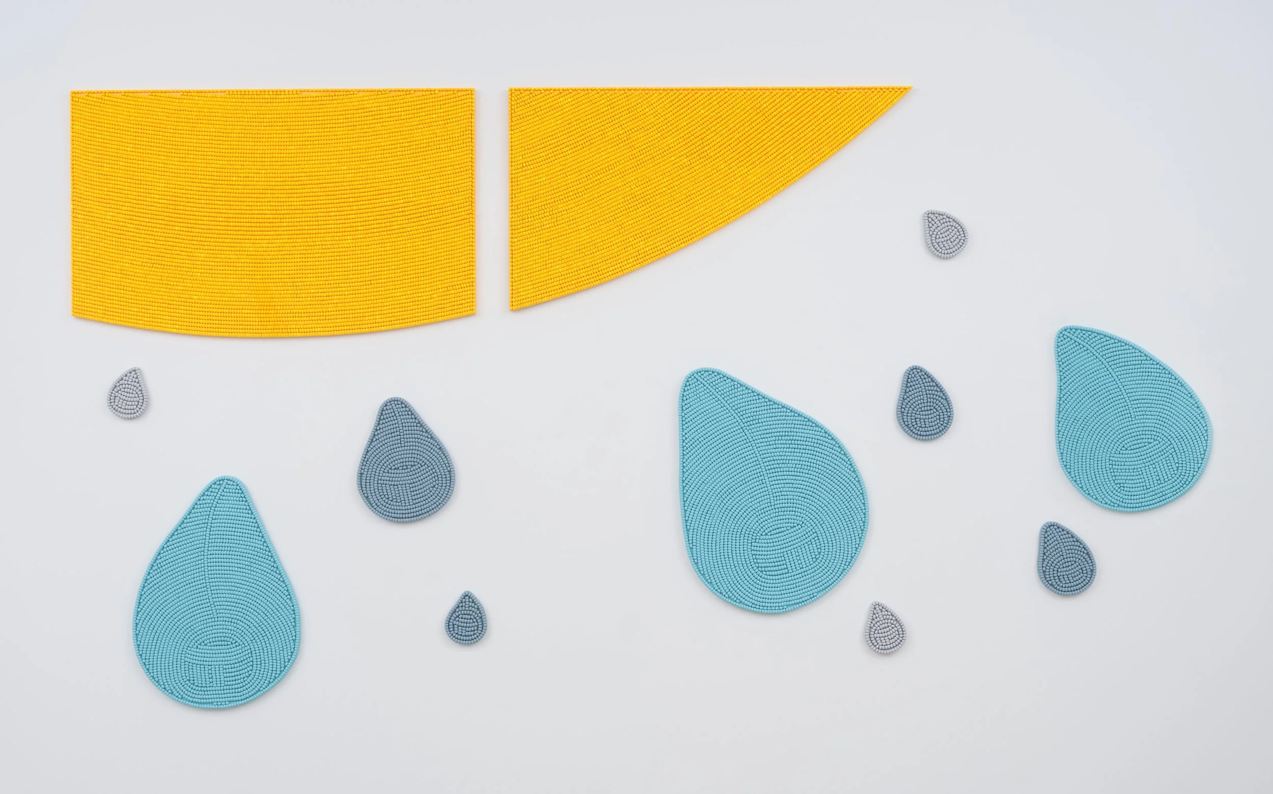 Renée Condo Elitg, 2025 Wood beads, wood panel, resin, acrylic paint 70.87 x 70.87 x 0.79 in 180 x 180 x 2 cm Courtesy of Renée Condo